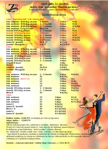 Iesācēji 2016.dz.g. un jaun. 1.-2.līmenis (W,Q,Ch,J) | 2016-2023 | I,I2 | 6 |
