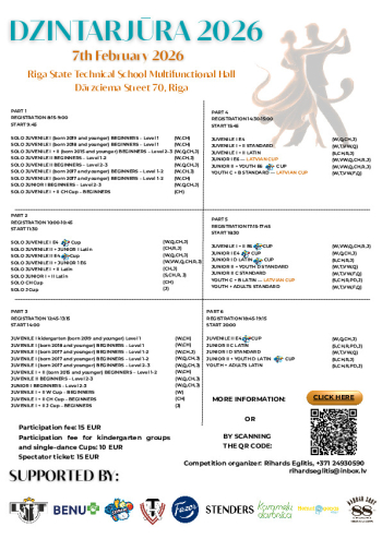 | Iesācēji 2017< 1.-2.līmenis 3 dejas | 2017-2023 | I,I2 | 14 |