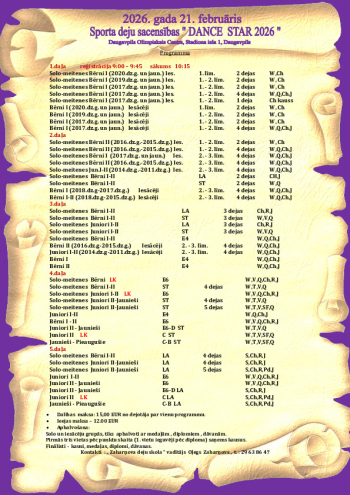 | Meitenes solo Juniori II + Jaunieši LA 4 dejas (S,Ch,R,J) | 2008-2012 | 2 | |