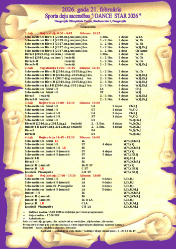 | Meitenes solo Juniori I + II ies. 2.-3.līmenis (W,Q,Ch,J) | 2011-2014 | I2,I3 | 6 |