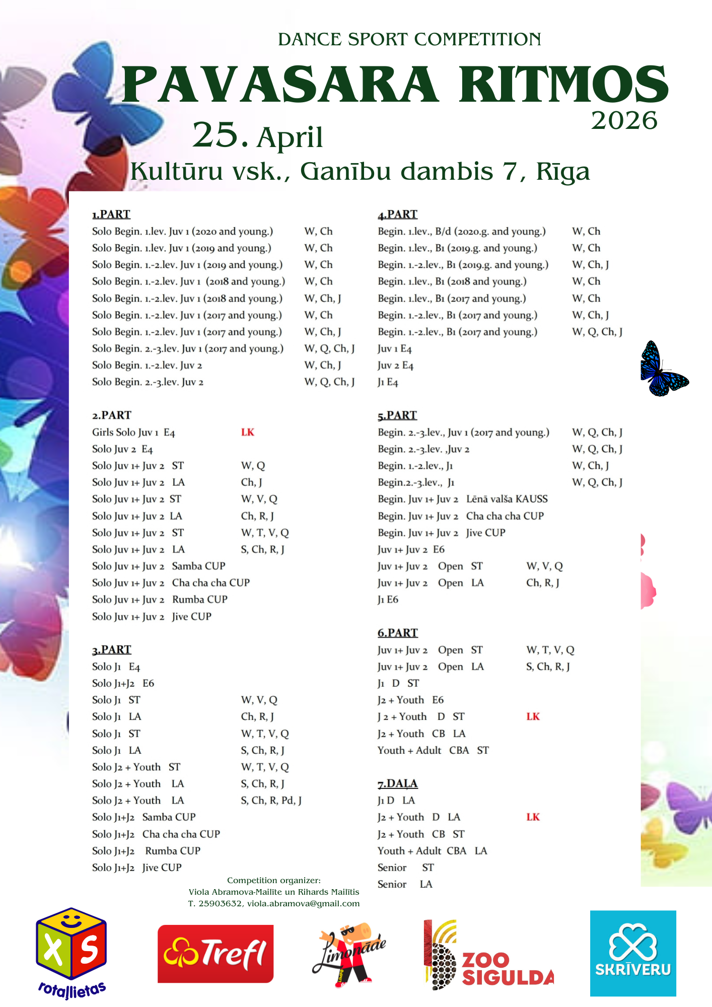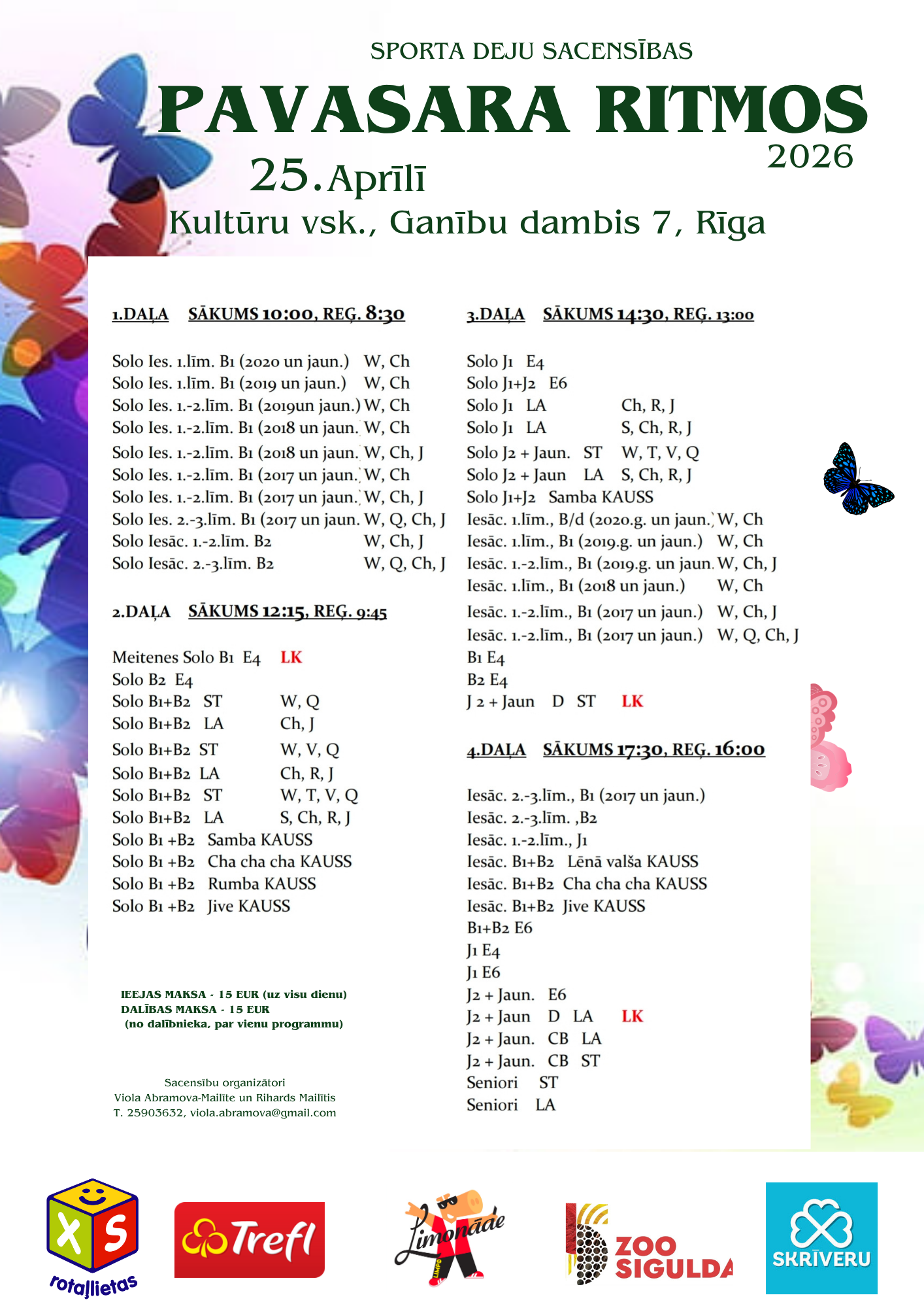 | Bērni I 2017.g. un jaun. Iesācēji 1.-2. līmenis (W,Ch,J) | 2017-2023 | I,I2 | 3 |