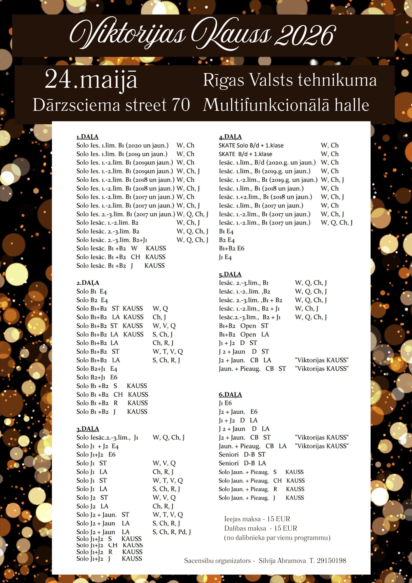 | Solo Juniori I Iesācēji 2.-3. līmenis (W,Q,Ch,J) | 2013-2014 | I2,I3 | 0 |