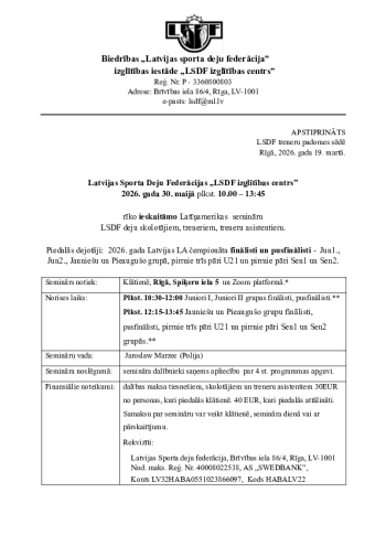 | Apraksts | Jaroslaw Marzec (Polija) Ieskaites LA seminārs LSDF tiesnešiem, deju skolotājiem, treneriem un treneru asistentiem |